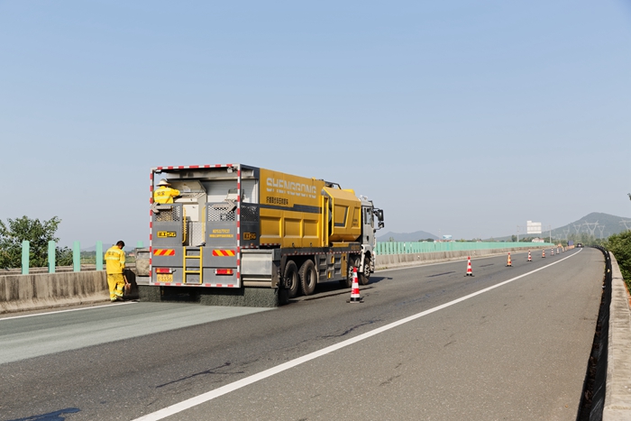 2018年高遠公司在湖北武荊高速進行KF-1抗滑霧封層施工